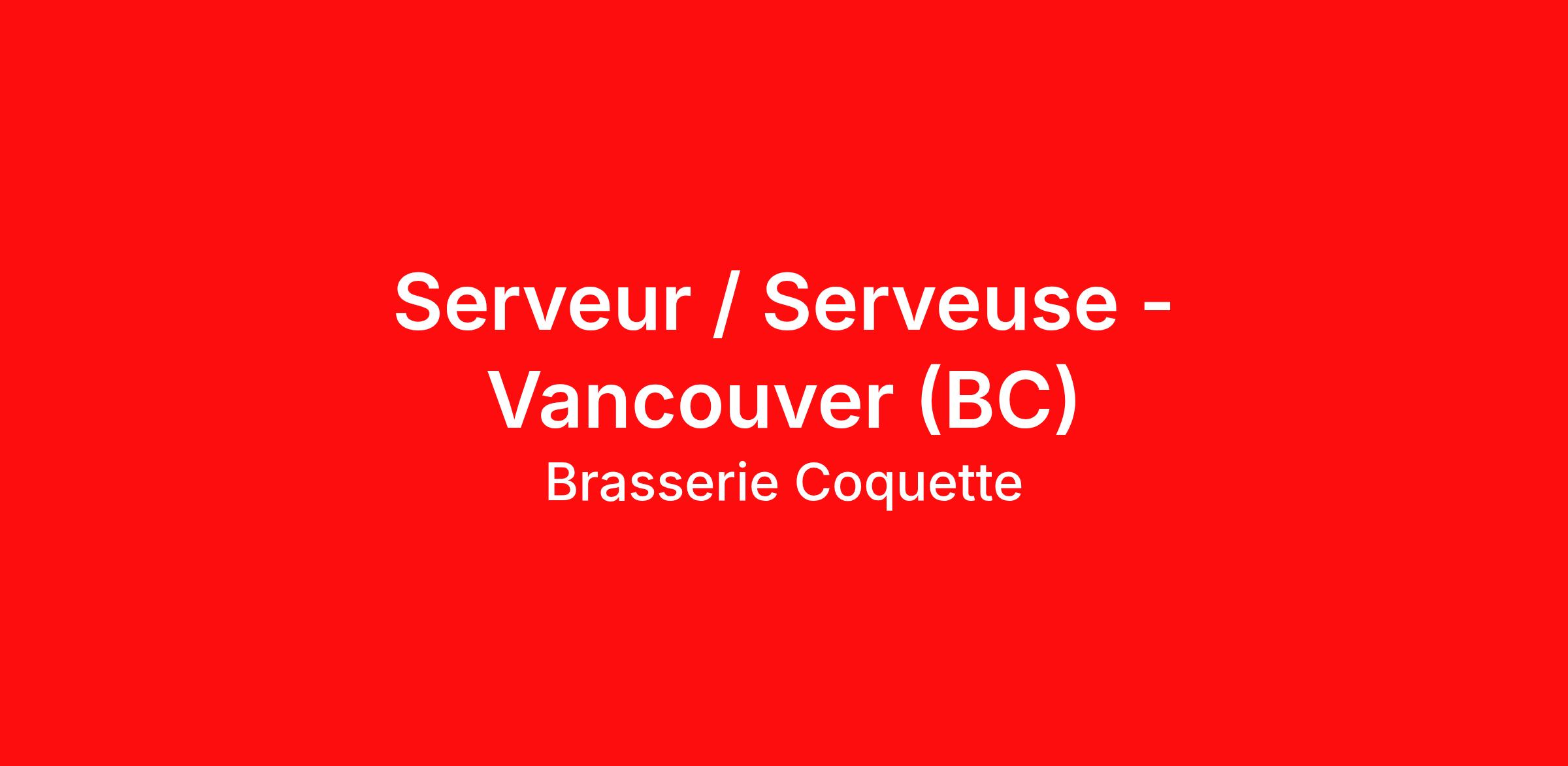 Brasserie Coquette situé dans le quartier de kitsilano à Vancouver, recrute un.e Serveur.se afin de rejoindre son équipe.